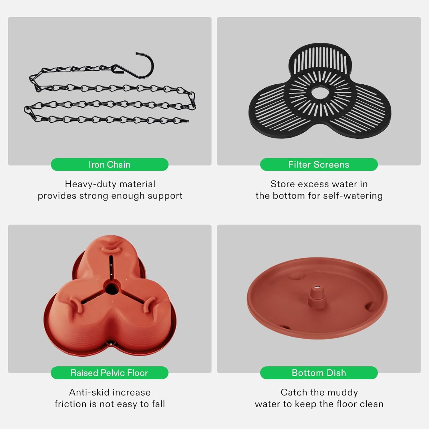 - Different Combinations: You can stack 2 or 3 or 4 tier; This planter can be hang with chains or used on a cylindrical rod
