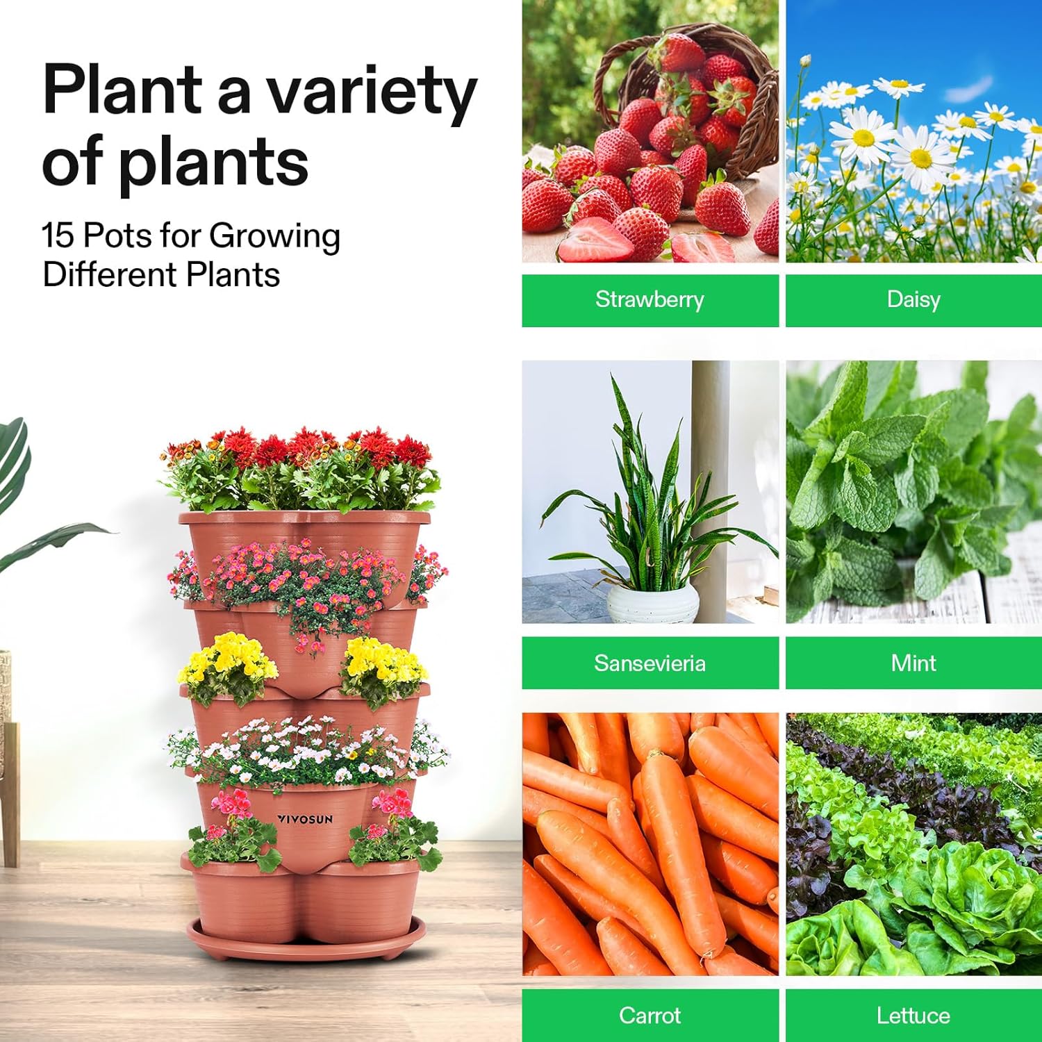 - Space Saving: The vertical stacking saves space to the most; You can grow many healthy plants in a small place